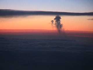 * Drifting Up * From the window of an airliner I saw this little patch of clouds drifting up through the lower cloud bank from some thermal updraft.