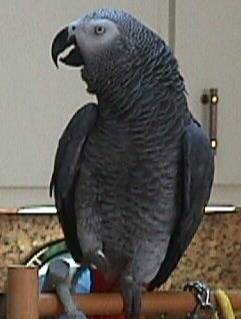 Here's a picture of an African Grey Parrot at a friend's house. This particular bird actually has a pretty mean disposition. I really don't like him very much.