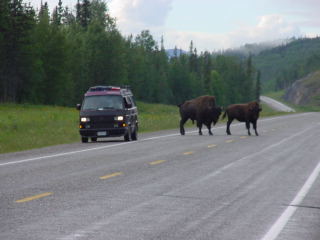 I really liked this picture for the size comparison between the buffalo and a small van. I passed a herd of these bison in the Yukon, along the Alaskan Highway. A somewhat unpredictable animal, it is certainly an intimidating creature to pass on the highway, especially while on a motorcycle.