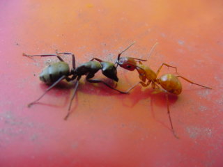 You can browse through my past archives and read about another incident where a red ant colony had taken over a black colony and used them as slaves.