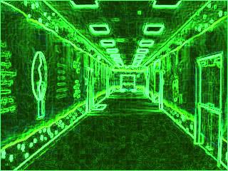 As you can see I really enjoy the outline effects. In this image, just a normal corridor, I performed the outline effect and then changed all the color to a bright green. I really love the effect it creates.
