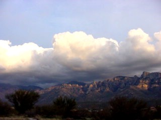 Like yesterday's posting, just as it can be sunny and warm down here in Tucson, there are often clouds looming all around over the Catalina Mountains, dropping rain and snow on the peaks from time to time.