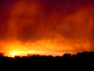 The reports stated that the fire was started by lightning from a thunderstorm the previous evening. While I was watching the fire I looked to the west and a thunderstorm was brewing. As the sun set, it cast an amazing glow across the rain as it drifted towards the ground. However, this rain, like some others I have seen, did not quite reach the ground, other than just a few sprinkles. As the rain sometimes falls from the sky, the heat of the desert evaporates it before it reaches the ground.