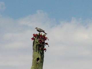 On the top of this saguaro cactus you can see a dove. One of the many birds that race to the pods and eat the fruit from within.