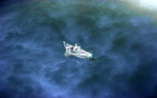 First of all, I took the image of the clouds and flipped it upside down, and then squeezed it down horizontally just a bit, to help give it a little more depth. I then cut out and paste the boat right in the center of the image, and there you have it. Because the boat was actually in the sunlight in the original shot, it came out looking almost as if it is a negative on the background here. I thought about touching it up and bringing the light and color of the boat down to match the background better but then I thought further and asked myself, "Why?" and left it as is. Two minutes was already too much time.