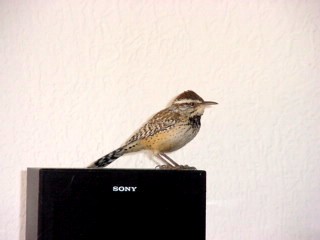 Upon arrival at home one day, I was startled to find a cactus wren, in my house, flying all around.