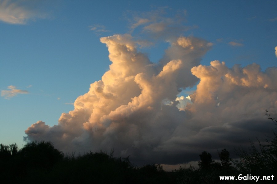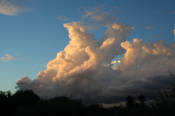 Here are some beautiful cumulus clouds that were forming during a sunset one day. I loved the little patch of white clouds in the distance, through the middle.