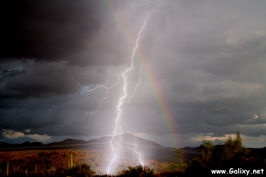 So, I decided to take a few of my own images and see what I could come up with. The background is that of a real rainbow picture somewhere north of Phoenix, and the lightning strike was from one of my previous lightning shots during the monsoon season. (click here). So, with a few adjustments here and there I merged the two together in the same picture and came up with this shot. I thought it was cool enough to share. So feel free to download it and send it out to all your friends and maybe my picture can get spread around the internet and people will actually think that it's real as well. ha ha, enjoy.