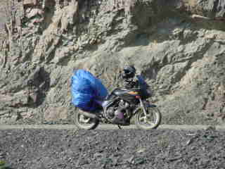 At this point I had replaced my somewhat shredded, white plastic tarp with a new, blue one. Looking towards the mountains ahead of me I anticipated some rain. Believe me, I found it, again.