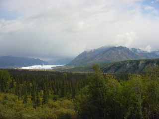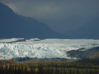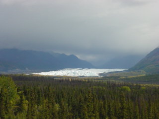Driving along I looked off into the distance to my south and saw another glacier. I feel stupid now because I didn't catch the name of this particular glacier but surely will be able to look it up at some point and post it here. It was alittle different than some of the other ones I had seen because it wasn't coming directly off of a mountain. I actually couldn't see what mountain it was coming from because it must have been obscured by the rain clouds in the background.