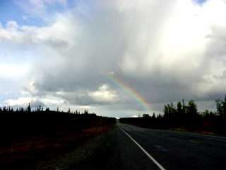 I got a shot of this fraction of a rainbow across the highway as if it were showing me the passage through. Would this mean that it was going to stop raining on me? Don't bet your life!