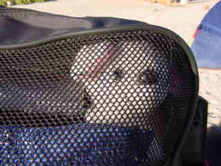 I took down my tent and piled everything back up on the bike when I noticed that one of the little stuffed animals, a little mouse, had gotten stuffed a certain way and was looking so sad through the net in my bag.