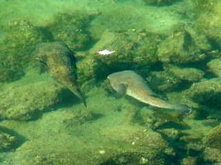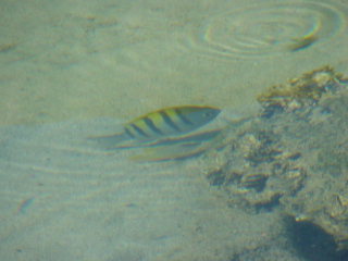 I looked back at the beach here to get a neat view. I looked down into the water and caught these two porcupine fish as they gracefully swam around together. Like I have said before, the water looked so clear, it was just like looking into an aquarium.