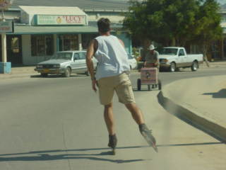 Ed was in very good shape and at 42 years he still works out aggressively and skates around Cabo. He had the day off but took his kids to school and came back to take us to breakfast. Actually we took Mario's van and followed behind Ed through the busy streets of Cabo. It was amazing to watch him dart in and out of traffic. We actually had a hard time keeping up with him until a screw came loose on his skates and he rode with us the rest of the way.