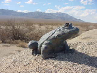 Now here I must explain the frog. While I was in Oregon, at my sisters, I was giving her such a hard time about her simple little yard art. The frog was sitting on the ground in my sister's yard at the foot of some very pretty flowers. Although it is only plastic it is actually quite heavy and I believe it must be filled with something. It is approximately seven to eight inches in length and actually looks pretty realistic. Well, to get back to the reason that you now see it in Death Valley, I decided to take the frog on a journey with me. Just a little trick on my sister to make fun of her little yard art and send this little thing on a trip across the country with me. You may see it from time to time in various different places along the rest of my journey.