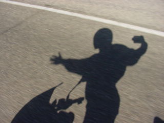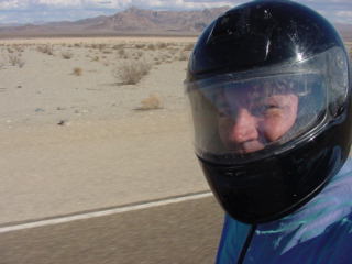 Since there was no traffic at all and I didn't see another car for miles I got a little silly and began to play around while riding. Here' a shot of me standing up on the bike, at about 65 miles per hour, with no hands, taking a picture of my shadow. Another one of just me and a shot to show that there really wasn't any traffic.