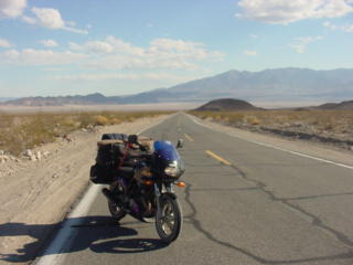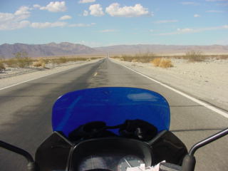 For miles you could see as the road just kept going and going and going. To show how little traffic there was I stopped the bike in the middle of the highway and got off of it to take a few pictures.