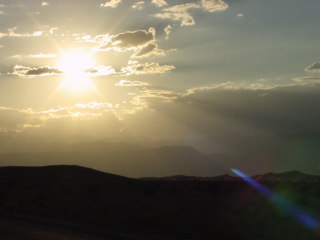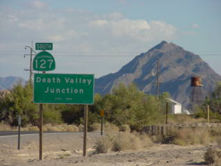 As I did the sun began to lower and it started to get dark. I found the place that had once been the town of Death Valley. There wasn't much there other than an intersection. I was beginning to get concerned about my fuel level and where would be my next tank of gas. One road, hwy 127 headed north and into Nevada. That was on my map. There was a sign that stated fuel only seven miles up that road. There was another sign displaying a way to Las Vegas, via Pahrump, NV. It stated 22 miles. I decided to take the seven miles up tot the closest gas and then backtrack to Pahrump, seeing as it was more on my way.