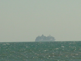 Off in the distance I watch the huge cruise ships come and go on the horizon.