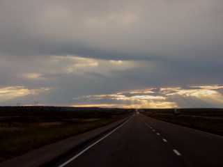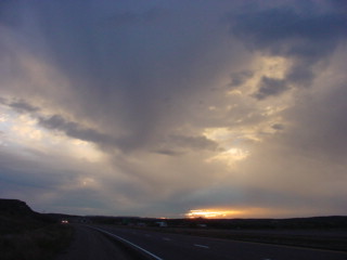 Some worse than others. Some looked as if they could easily support a tornado or two. The wind would pick up and blow with strong force across the freeway. Sometimes it would change directions making me quite nervous. Then some storm clouds would shy away, as if they were purposefully subsiding to give me clear passage.