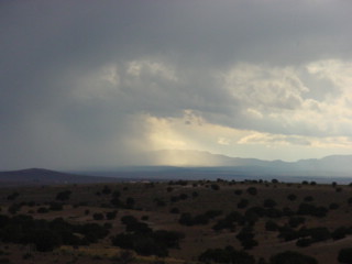 As I was about to leave Albuquerque I had heard that there was scattered thunderstorms around the area. I was planning on continuing with my original heading and go south. However, when I got on the bike and out on the highway I looked around and saw that the south was covered in clouds. I looked to the east and it was also obscured. I decided to go on line and see exactly where all the storms were and how I might be able to avoid them. I looked and noticed the thunderstorms saturating the path to the south. They were also scattered throughout the eastern route as well but not near as heavy. I decided to take interstate 70, east and on towards Amarillo. There were several times I thought I had made a bad decision. I looked around and thunderstorms were all along the horizon.
