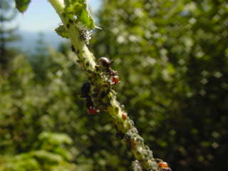 I got this neat close up of a bull thistle and suddenly noticed that it had something moving on it. Looking closer I got the next shot of some ants devouring hundreds of aphids on the stem of the thistle.
