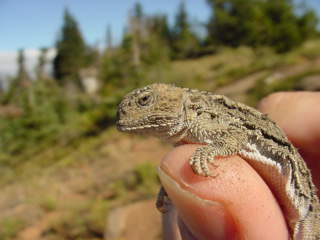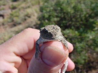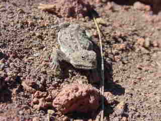 Up on top of the mountain I found something that I would have never expected. A very small horned-toad lizard was there in the sand and rocks. I thought that it would have been too cold for one of these little guys. I thought that they were more adapted for the desert climates than the cold. I know it must have been about 45 degrees while I was up there and the wind was blowing pretty good. Not having brought up a coat with me I was quite chilled myself.