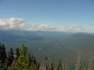 From he top of the peak you can see for hundreds of miles in every direction. They don't allow visitors up in the lookout tower but all along the top you can still see in every direction. Interesting though, to the west you can normally see all the mountains along the Cascade range. Much like my views from Crescent Mountain except the opposite side. On this day, however it had become cloudy in the valley and the view of all the peaks were obscured by the random clouds making their way through the mountain range. However, on the east side you could see how the landscape changes very dramatic to very flat. If one was to travel off to the east even further they would run into the vast deserts of Eastern Oregon. Not one of the more popular attractions in Oregon, Eastern Oregon is very dry and doesn't get that much rain like the valley. Most of the clouds that make it through the mountains keep moving east on to Idaho and Montana and Wyoming.