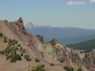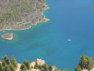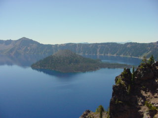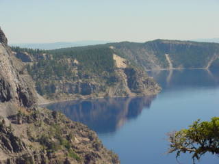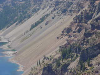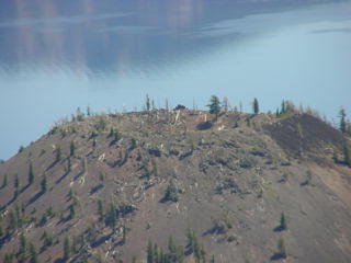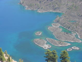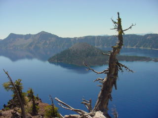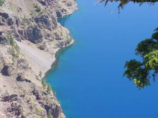 Now I must emphasize the amazing color of the water there. These pictures just don't express how incredibly blue the water is. Now most of the time water appears blue because of the reflection of the sky. However, that is partially the case for Crater Lake but this lake is quite different because of the composition of the water itself. Crater Lake doesn't support a whole lot of life in it. It actually didn't contain any fish for thousands of years until people started stocking fish into the lake. Sine there are no tributaries feeding the lake there was no natural way for fish to get into the lake. The only water entering the lake comes from the sky. There is also no way for water to leave the lake other than evaporation.