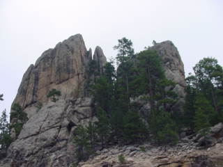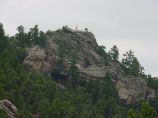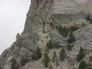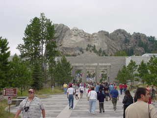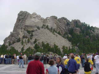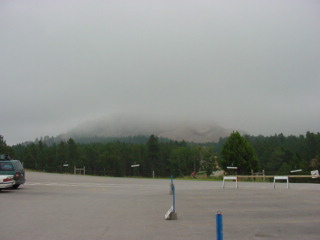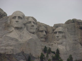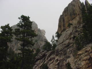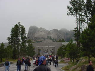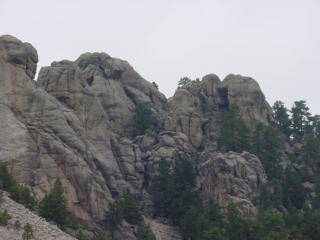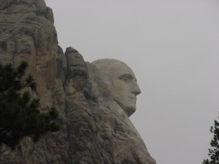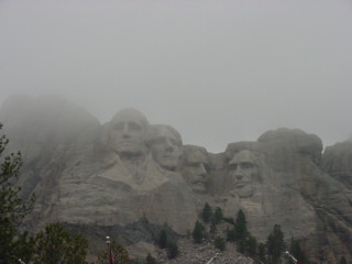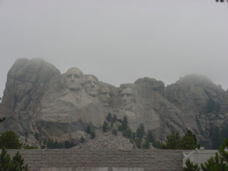 Mt. Rushmore was there. The rain clouds had lifted for the drive down but as soon as we got to the monument the clouds had covered the area. Still very visible I was able to get some pictures of the huge sculptures. Blasted in the hard granite surface of this mountain are the four presidents' faces. An amazing feat this must have been.