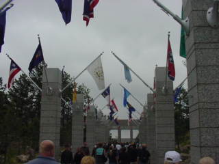 There at the entrance to the park was rows of flags. One of each of the 50 states. I started to take pictures of each one to add to my collection and post on my site but it would have taken quite a bit of time to get a good shot of each one and waiting for it to open. Besides, the clouds were coming in and we still wanted to move on the see the Crazy Horse monument a little further south.
