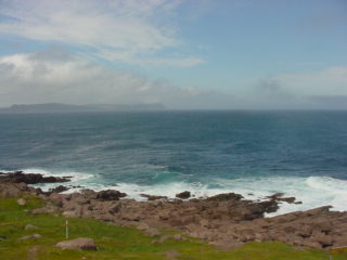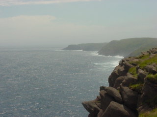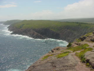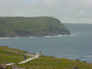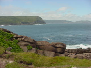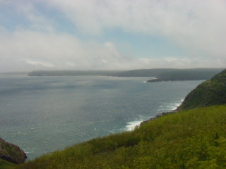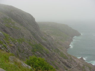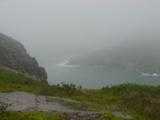 Off in the far distance of this next picture is where the Cape Spear Lighthouse would sit. It was still hidden behind fog. I drove up there and found that the fog had lifted there by the time I arrived.