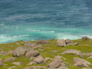 The water was amazing in color. It definitely looked cold. I couldn't catch them on camera but there was a few humpback whales swimming around not far off the shoreline. I could see their spouts and then see a real quick glimpse of their backs as they rolled over and back into the water. Too quick to get the camera on them and take the picture.