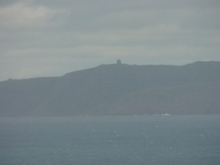 The nearby lighthouse, shown here obscured by the fog was on the other side of the channel.
