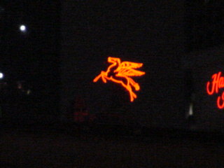 Here I captured a shot of the historic Pegasus that rotates atop a small tower in downtown area. This Dallas icon has been shining up there for as long as I can remember. Can anybody tell me its history?
