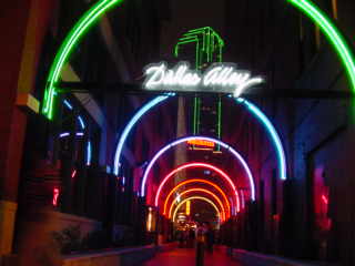 Part of the West End here is the Dallas Alley. Under those arches you can go on either side to enter the clubs, restaurants, and other establishments. Through a door on the left you can go down to the end of the hall and take a right into the Alley Cat's dueling piano bar. The guys in there are amazing. They know just about every song there is to know.