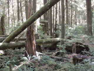 I stopped to stretch my legs a bit and noticed that the undergrowth in the woods was very thick. It was even soft under my feet with all the layers of moss and evergreen needles. In the middle of the day it was very dark there in the woods from the thick forest blanketing the sunlight out.
