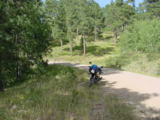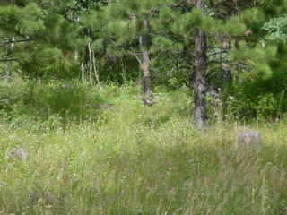 On my way back to Hulett I had a wonderful experience. As I drove past the tower and on down the highway I saw something out of the corner of my eye. It was quick. A quick flash moving across a field. I estimated it to be a deer or two so I jumped on the throttle to catch up with it. Sure enough it was two young bucks and they looked as if they were heading towards the highway so I accelerated till I was right beside the leader. Suddenly seeing me, instead of jumping over the fence and crossing the highway, he ran along side the fence line for a moment, reaching speeds somewhere near fifty miles per hour. Finally running out of patience he did it. It was as if he had invisible wings the way he just floated over that fence like nothing. Then he darted out into the highway. Anticipating his maneuver I had slowed just enough to get as close as I could but not touch the animal. Then, just as easily as the first fence he hit the grass on the opposite side of the road and again, flew through the air like the wind just picked him up and carried him across.
