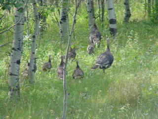 Occasionally seeing a few animals here and there, mostly slow elk (cows) but a few deer and lots of wild turkeys. Now most of the animals that I saw quickly darted off into the woods before I could get my camera out. However, I did find this family of turkeys that I chased into the woods. Fleeing from me I quickly ran around them to head them off up the hill. Noticing me they all stopped so I stopped and stood very still for a while. That's when I noticed that they didn't really seem to be as afraid or they just didn't care, because they stopped running long enough for me to get a few pictures like this next one.