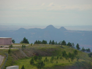 In this next image you can see the mountains in the background, with the Devil's Tower shadowed in front of them, with the military complex on the hill in the foreground.