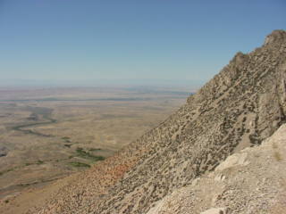 The ride down to the valley below was pretty fun with the winding curves all down through the jagged cliffs and drop-offs. Once at the bottom we found dry and "flat". Yep, I found "flat" again. The temperature, of course, had risen quite a bit from the top of the mountain.