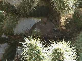 As I had mentioned prior, some animals actually live inside the Cholla cactus, like the dove in the picture here, resting on a nest.