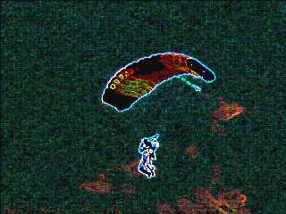 This was a picture of a skydiver, Jim Adams, coming in for a landing under canopy.
