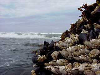 Just a bunch of barnacles, a few mussels and a little sea weed from the Oregon coast. Oh and there's that gigantic shark just under the water out there beyond those breakers a few nautical miles.