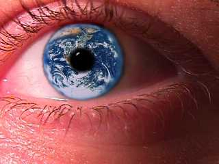 Taking a very close-up image of my eye, I paste a picture of the world in