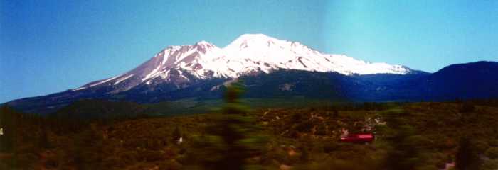* Shasta * In northern California, at the very lower end of the cascade range, Mount Shasta, a dormant volcano can be seen for over 100 miles away.