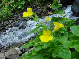 * Monkey Flower * This little Seep-spring Monkey-flower was growing alongside a small creek at the foot of a small waterfall in the Multnomah Falls area in Oregon.