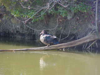 * Big Fat Duck * Okay, just a big fat duck sitting by a pond. It wasn't swimming around with the other ducks. Just sitting on the limb there. Maybe it had a buoyancy problem.
