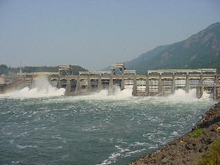 This is the Bonneville Dam on the Columbia river that borders Washington and Oregon. This is about a 30 minute drive east of Portland and just a few minutes from the Multnoma Falls area.