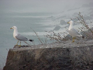 During most of the day the Niagara Falls area is filled with seagulls. With all the updrafts and radical winds around the cliffs and falls they perform some amazing aerobatic feats. I got this shot of these two taking a break on the edge of a cliff on Goat Island. That's the bottom of the American Falls in the background.